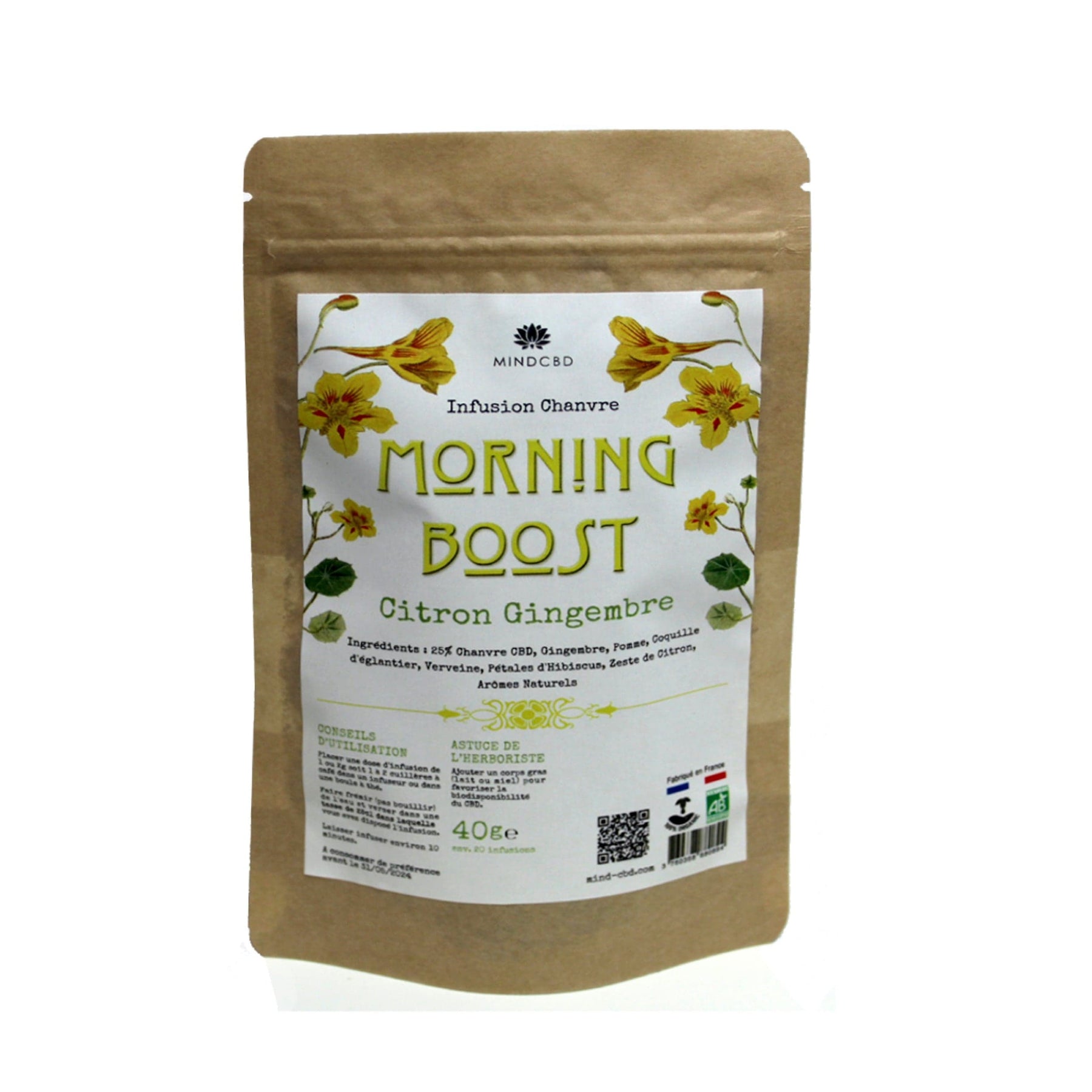 Lemon Ginger Morning Boost Herbal Tea (25% CBD Flowers), 40g