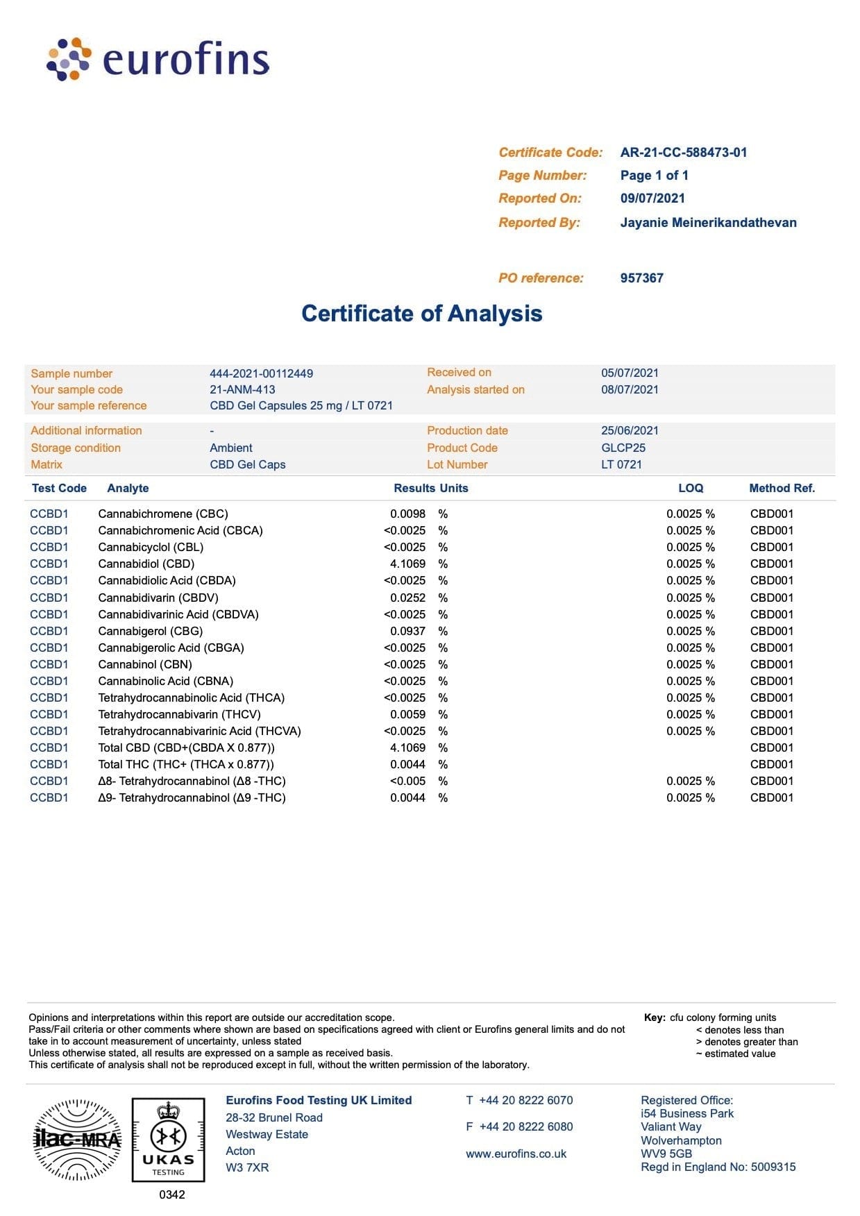 Certificato di analisi Promozione di capsule CBD di alta qualità