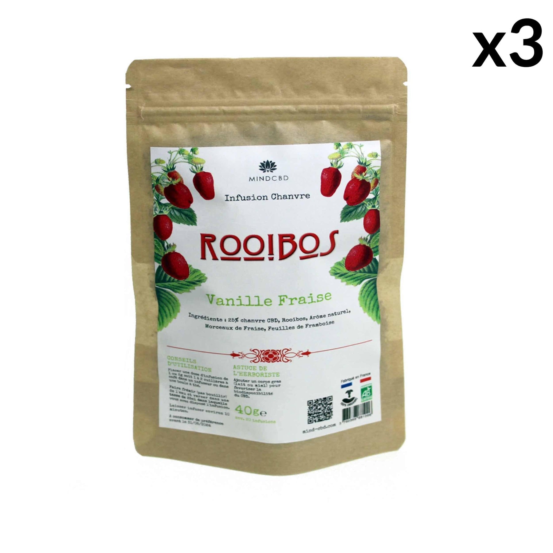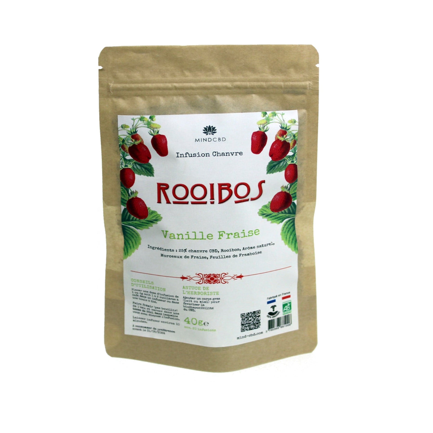 Infuso di fragola vaniglia Rooibos, fiore di canapa CBD (25%), 40g
