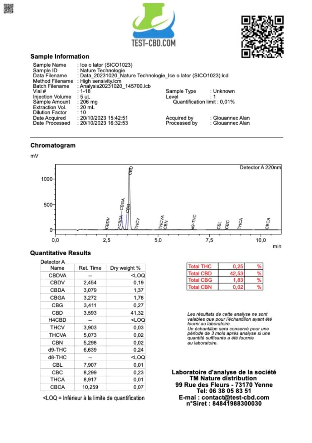 Resina Ice O Lator CBD, natural francesa 42% - CBD